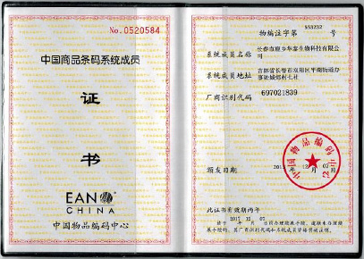 中國商品條碼系統成員證書